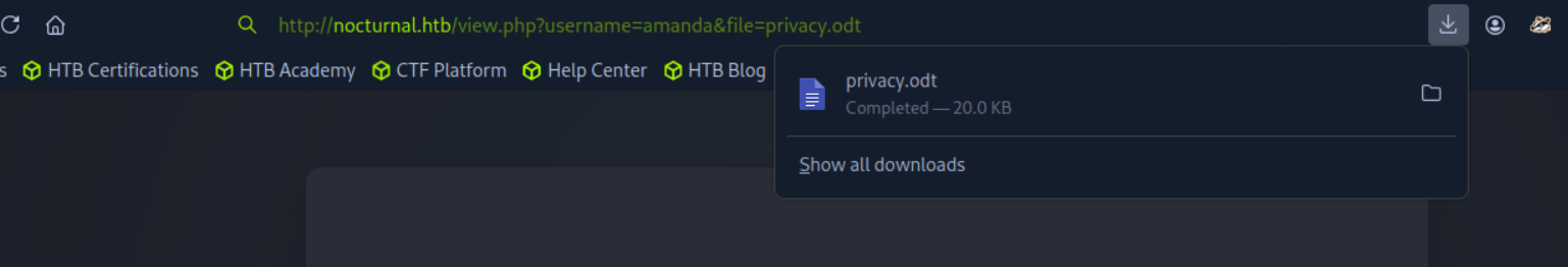 http://nocturnal.htb/view.php?username=amanda&file=privacy.odt