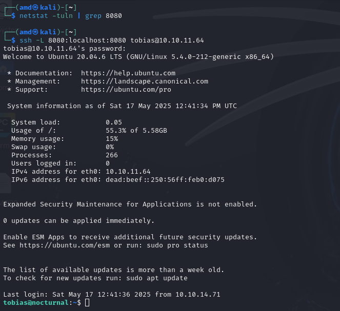 We cannot visit http://127.0.0.1:8080 so lets try port forwarding
