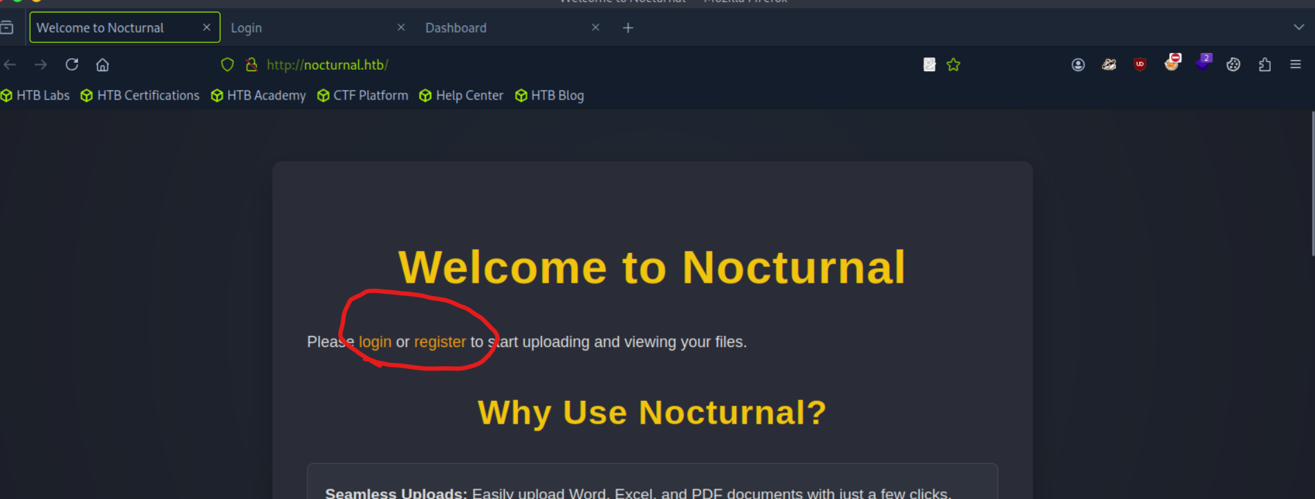 Add “10.10.11.64 nocturnal.htb” to /etc/hosts