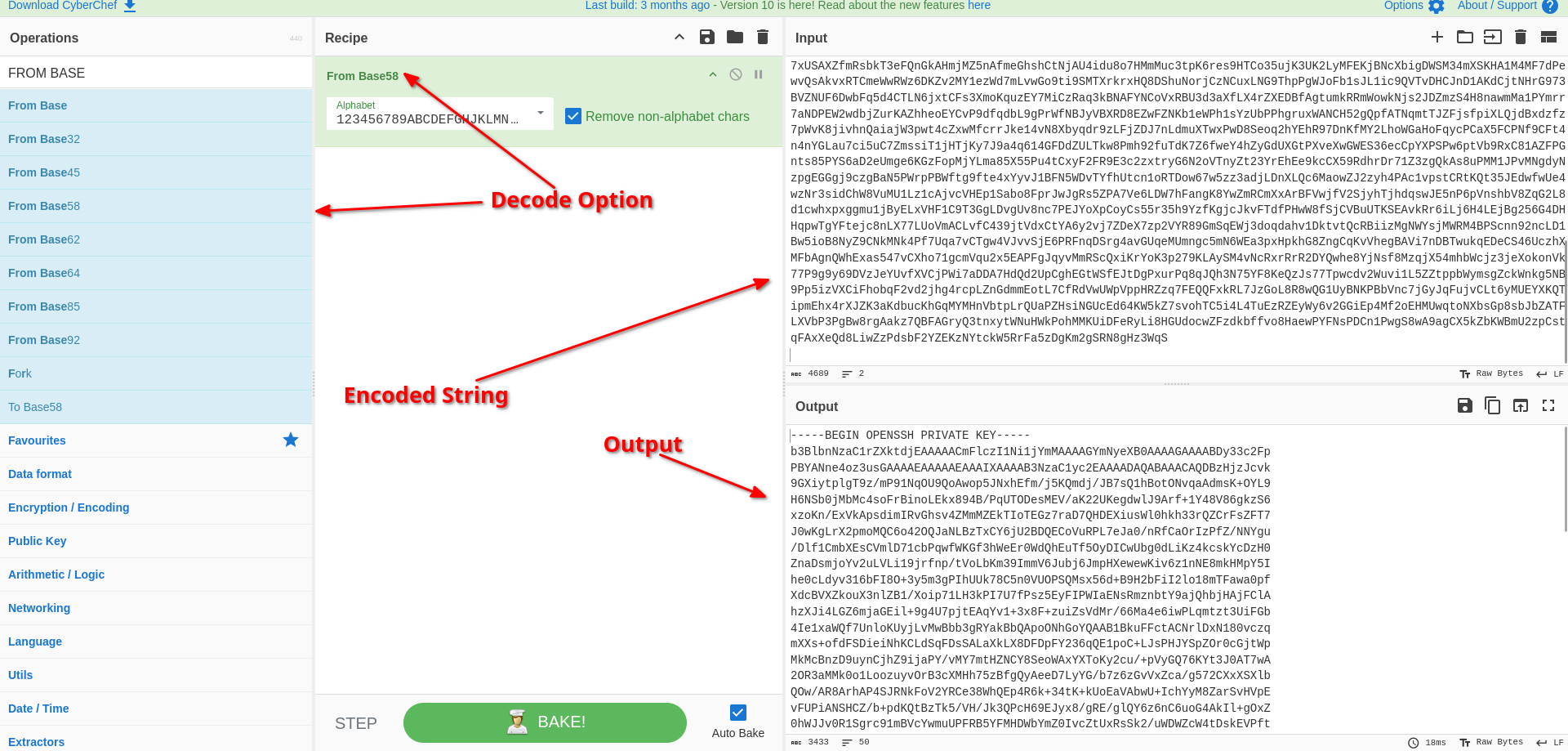 If you try the decoding options, From Base58 will work.
