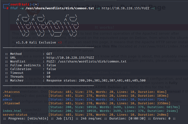 - Nap ve Ffuf çalıştırdım. Ffuf daha hızlı olduğundan gobuster yerine Ffuf kullanıyorum. Nmap sonuçlarına göre ssh’ın açık olduğunu gördüm. Ayrıca /admin sayfasını buldum.