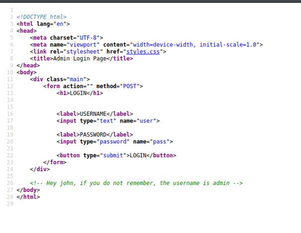 - Kaynak koduna baktığımda John adlı bir kullanıcı olduğunu fark ettim. Ve kullanıcı adının admin olduğunu öğrendim.