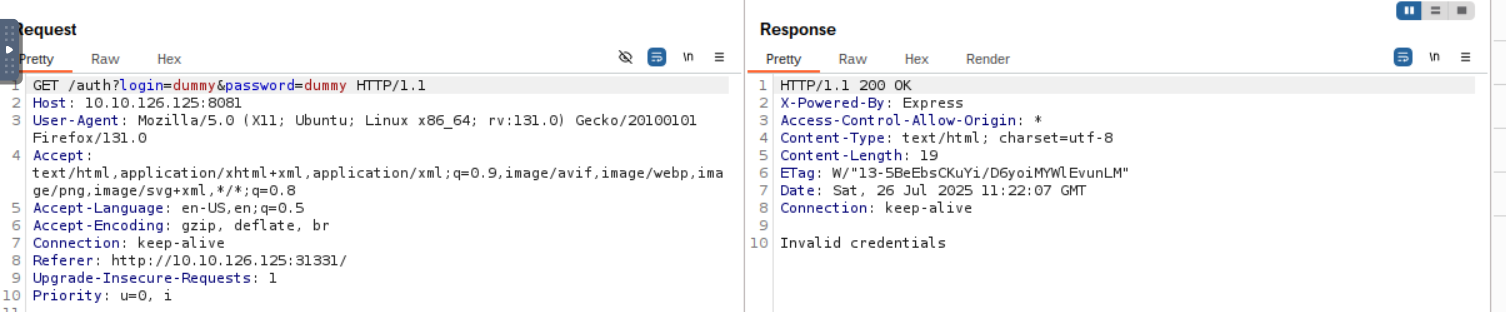 Lets catch the login request with burp
