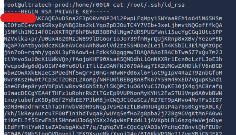 What are the first 9 characters of the root user’s private SSH key?